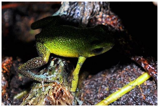Foto's van de kikkertjes die Eric in zijn terraria heeft / had.