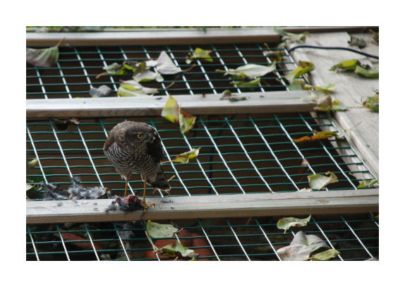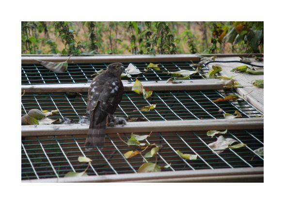 Sperwer op schildpaddenbak |