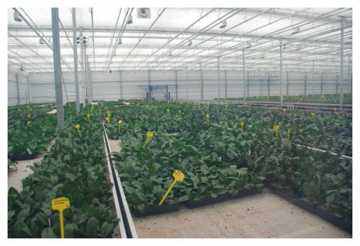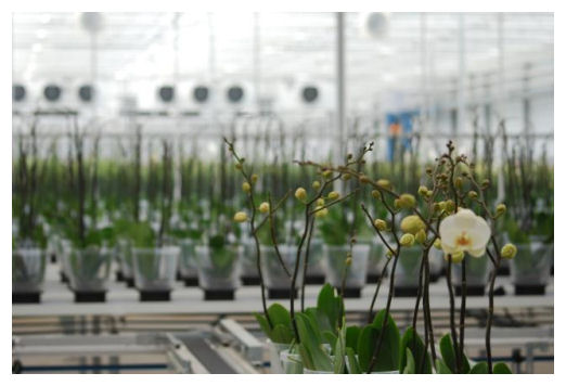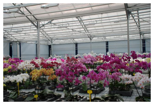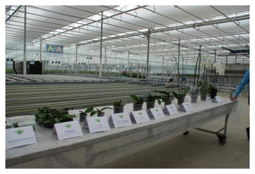 De tuin met klimaatbeheersing waar de jonge plantjes worden opgekweekt tot uiteindelijk een bloeiende plant. |