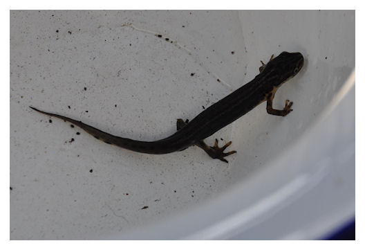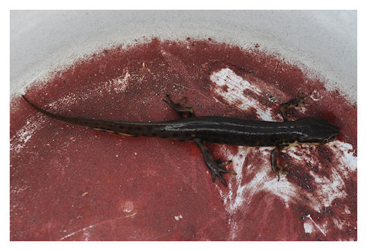 ![]() Bij het vangen van de visjes ving ik ook een watersalamender |