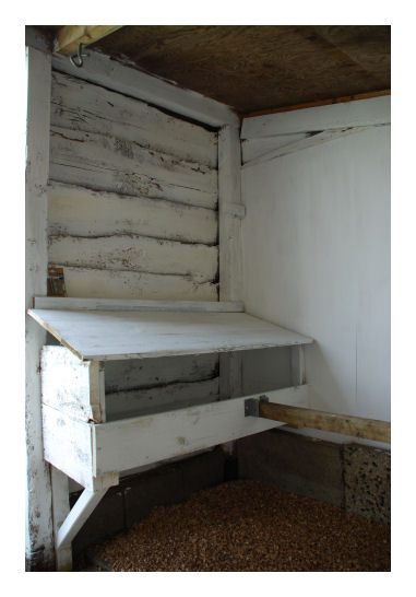 ![]() 4.4.2009, de legbak. Helaas verkozen de kippen de deksel tot stok, de klep scheten ze onder en inmiddels is het deksel verwijderd en is de bak nu de mestplank geworden... |