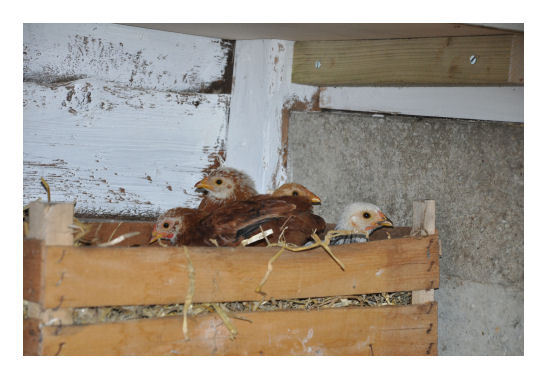 ![]() De buitenren met alle zes de kippetjes en Kipa |