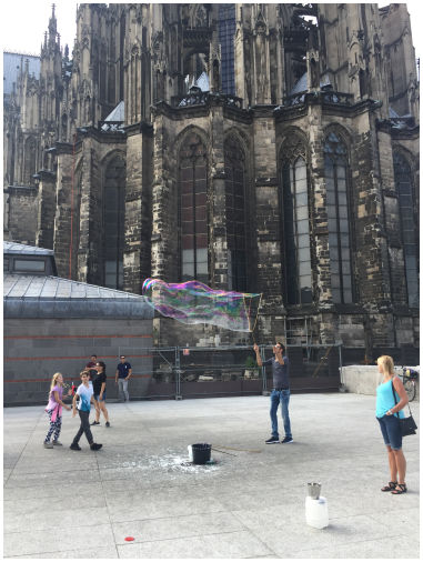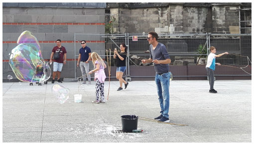 ![]() Een straatartiest bij de Dom die bijzondere bellen blaast. |