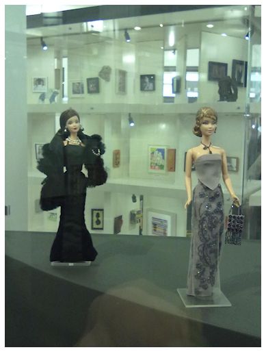 ![]() Barbie poppen uit serie 'collector's dolls' in kleding naar ontwerp van Hubert de Givenchy en Giorgio Armani (naar otwerp uit 1956) Poppen uit 2000 en 2003. |