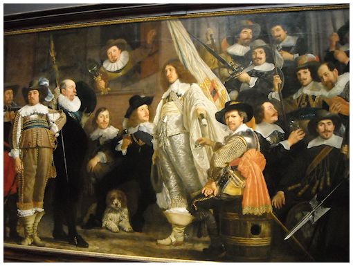 ![]() De nachtwacht, officiëlle naam: "De compagnie van kapitein Frans Banning Cocq en Luitenant Willem van Ruytenburgh maakt zich gereed om uit te marcheren". |