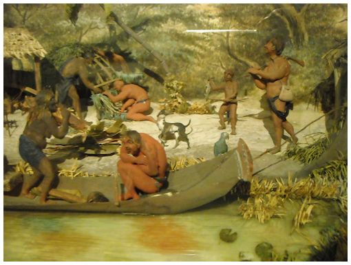 ![]() Diorama van een Caraïbenkamp uit 1810 |