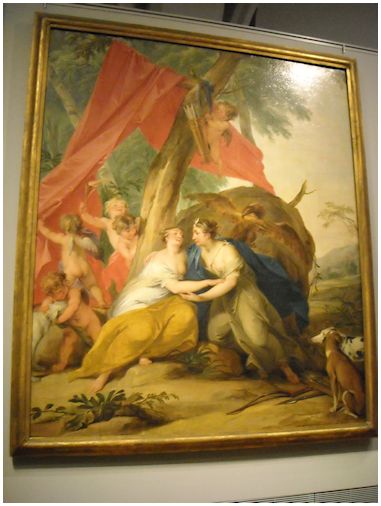 ![]() Jupiter vermomd als Diana veleidt de Nimf Callisto (1727) Geschilderd door Jacob de Wit (1695-1754) |