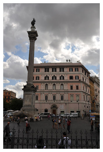 ![]() Santa Maria Maggiore, deze Basiliek liet Paus Liberius bouwen. Deze paus zag in een visioen Maria waarna hij sneeuw zag vallen op de top van de berg Esquilino. En op deze plek staat nu deze mooie Basiliek. De voorgevel is een 18e eeuwse barokgevel. |