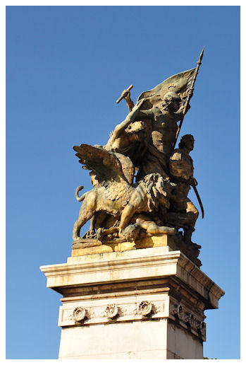![]() Monument Vittorio Emunuelle ll, gebouwd in 1911 ingehuldigd door Vittorio Emanuelle, de eerste Koning van het verenigd Koninkrijk Italië. De start begon in 1885. In het monument is ook het graf van de onbekende soldaat. |