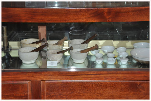 ![]() Verzameling op plank in badkamer |