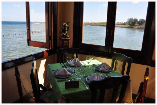 ![]() Dit was de stamkroeg van Hemmingway en zijn tafel staat nog altijd gedekt |
