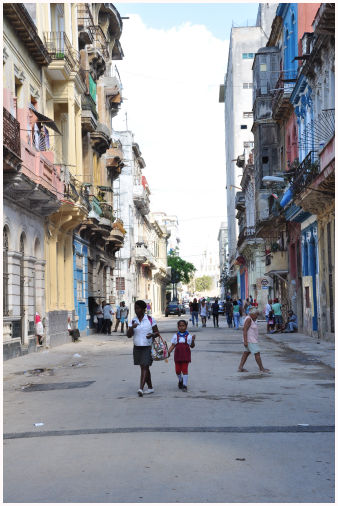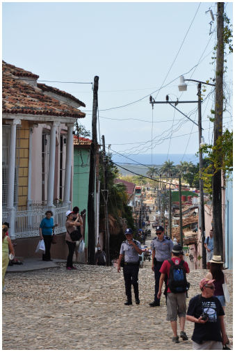 ![]() De straten van Trinidad zijn bestraat met ronde keitjes, deze keitjes waren balast van de Spaanse schepen die suiker en tabak kwamen halen. Zij lieten deze balast achter in Trinidad. Op hakken lopen is niet echt handig... |
