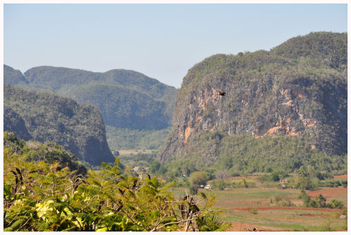 Valle de Viñales een prachtige vallei bekend om zijn tabaksteelt en mogotes (kale rotskegels) en ondergrondse riviertjes |