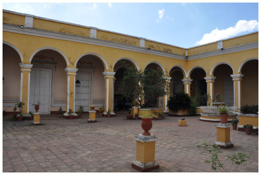![]() Plaza Mayor met Casa de las Sánchez Iznaga Het 18e eeuwse herenhuis van de familie Sánchez Iznaga, waarin het Museum voor de Koloniale Architectuur is ondergebracht |