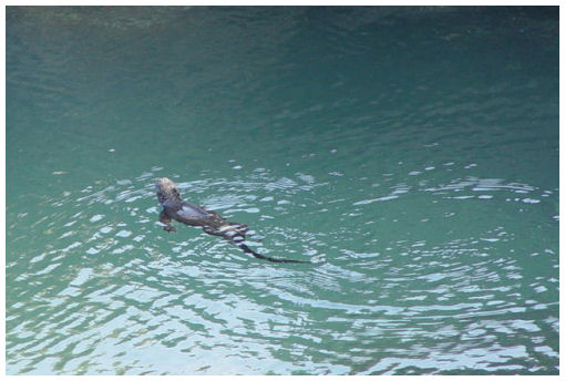 ![]() Zeeleguaan, Marine Iguana, Amblyrhynchus hassi, Isla Genovese , zwemmend |