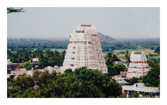 De hoogste Gopuram is 90 meter, Srigangam tempel |